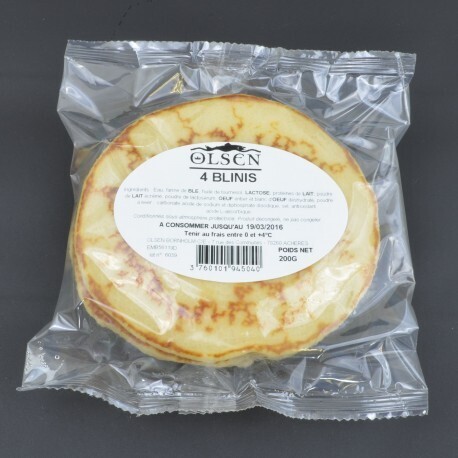Sachet de 4 blinis ronds d'environ 12 cm de diamètre. Leur texture est moelleuse, aérée et non collante. Leur odeur légere de crêpe, reveillera vos sens avant de les manger !